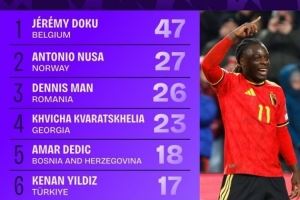 体育资讯11月20日讯 本届世欧预小组赛已经告一段落,squakwa也统计了本届赛事成功过人情况,多库断崖领跑。
